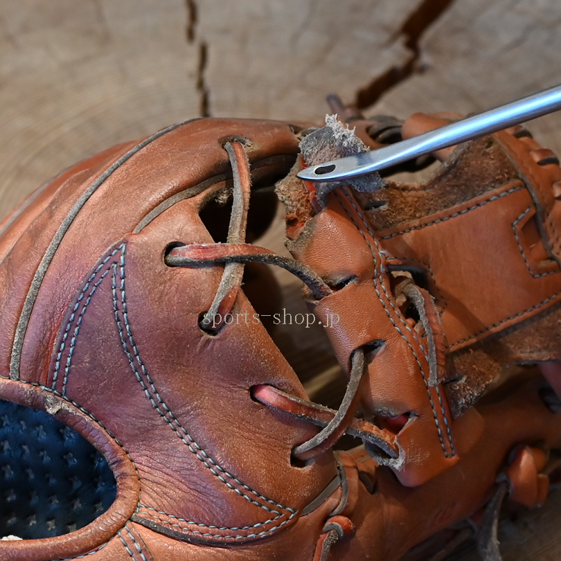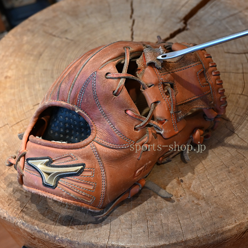 納期は修理(加工)の混雑状況により多少前後いたします。金額は硬式・軟式用など使用する革紐(材料)、修理の方法により異なります。グラブ・ミットの状態によりお受けできない場合(修理不可)もございます。他店での購入品、ネットでの購入品、頂き物などでも修理をお受けしております。遠慮なく相談ください。
