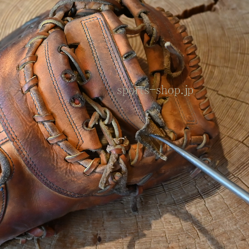 納期は修理(加工)の混雑状況により多少前後いたします。金額は硬式・軟式用など使用する革紐(材料)、修理の方法により異なります。グラブ・ミットの状態によりお受けできない場合(修理不可)もございます。他店での購入品、ネットでの購入品、頂き物などでも修理をお受けしております。遠慮なく相談ください。
