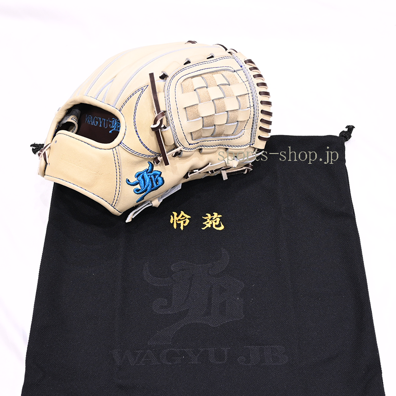2025年11月7日 グラブ刺しゅう,匠の技術紹介ブログ 店長 メーカー:和牛JB 商品名:たまきオリジナル 和牛JB 店舗・別注 硬式用グラブ 基本モデル:JB-006T 硬式用 本体カラー:キャメル ウエブ:JBW-03 縫い糸:ブルー 平裏部にWAGYUJBのロゴ刺繍入り 平裏下部に刺しゅう追加 刺繍糸カラー:シャンパンゴールド