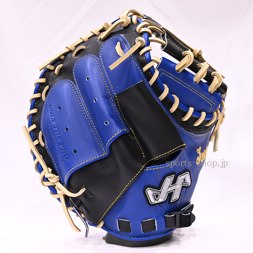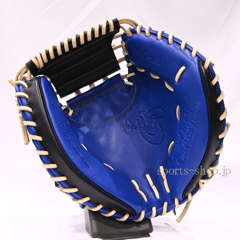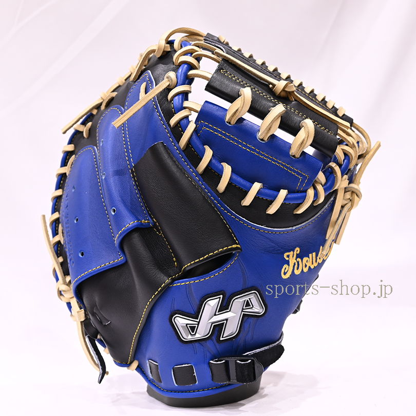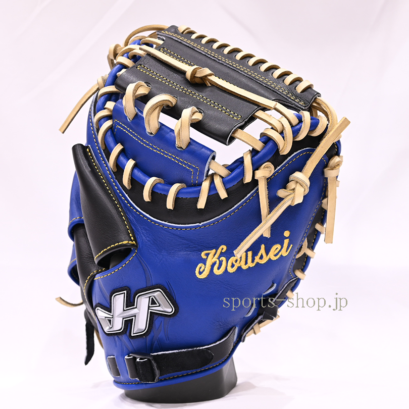大学野球で使用するキャッチャーミットをオーダーいただきました。高校野球ルールから解放されKブルー×ブラック、Pブラウン紐の組み合わせです。型付けは湯もみ加工を依頼頂きました。