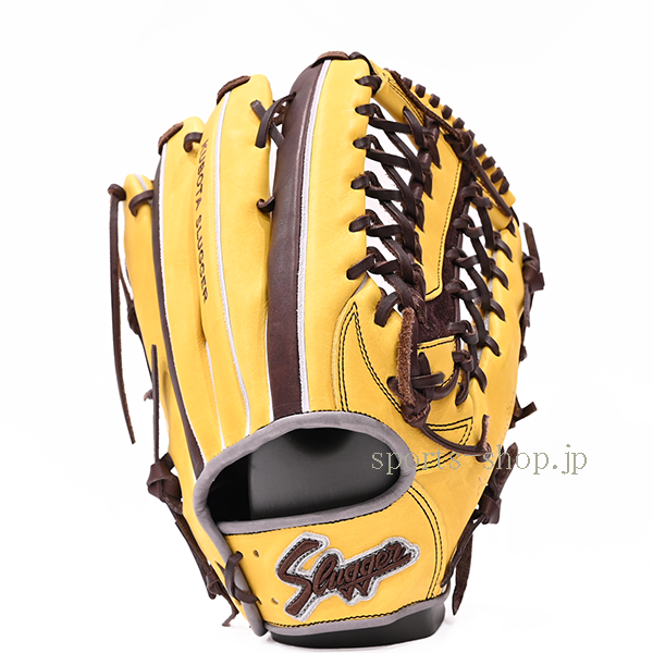 たまきオリジナル 久保田スラッガー 軟式用オーダー 外野手用 ST39 W55 中指ロゴ刺繍 Gイエロー×バーガンディ