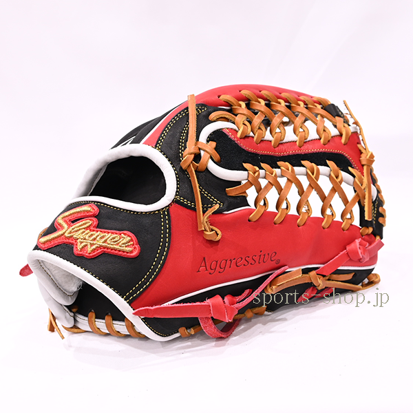 たまきオリジナル 久保田スラッガー 軟式用オーダー 外野手用 SPC(T5)型 W42 中指ロゴ刺繍 ブラック×レッド×ホワイト
