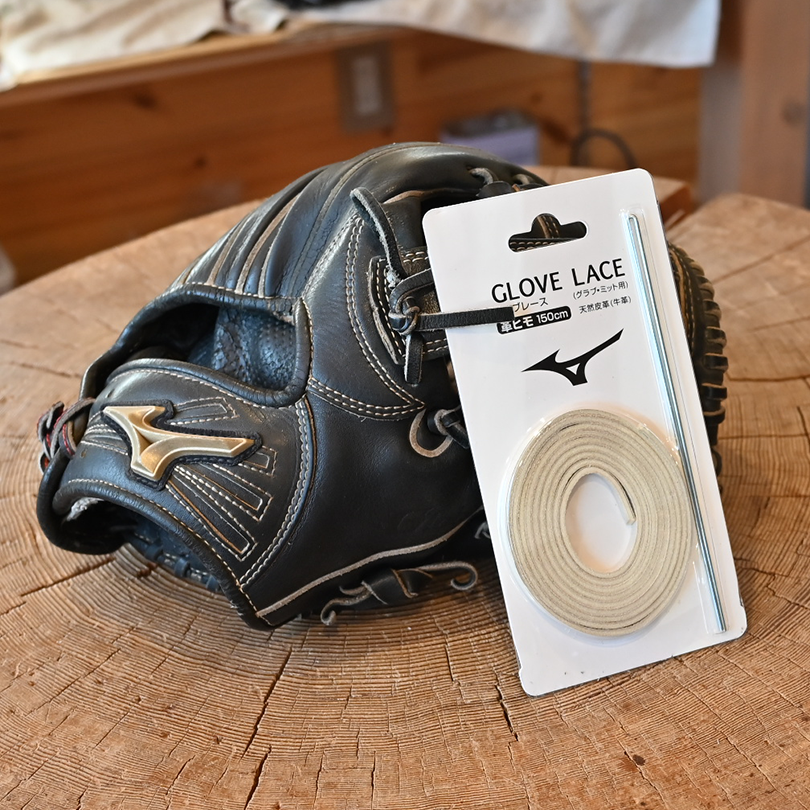 ・革紐はミズノ製のシルバー、品番:1GJYG12503