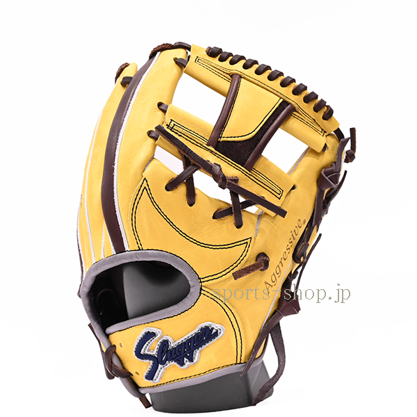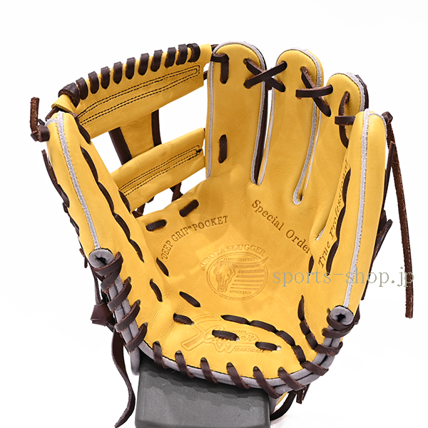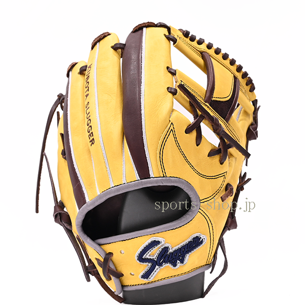 たまきオリジナル 久保田スラッガー 軟式用オーダー 内野手用 AR4型 W63 中指ロゴ刺繍 Gイエロー×バーガンディ