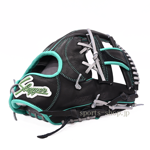 たまきオリジナル 久保田スラッガー 軟式用オーダー 内野手用 AR4型 W63 中指ロゴ刺繍 ブラック×エメラルド
