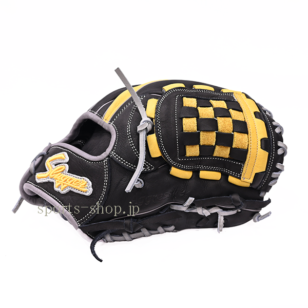 型付け済み たまきオリジナル 久保田スラッガー 軟式用オーダー 内野手用 T51型 W34 中指ロゴ刺繍 ブラック×Gイエロー