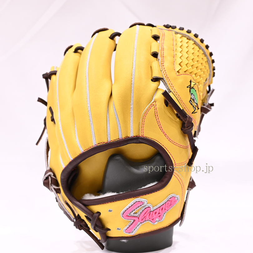 チームのロゴマークをウエブに刺しゅうした特別仕様。 【グラブデータ】 メーカー:久保田スラッガー(kubota slugger) アイテム:硬式用 オーダー グローブ 基本型:KSG-L7S 本体カラー:Gイエロー 裏革…